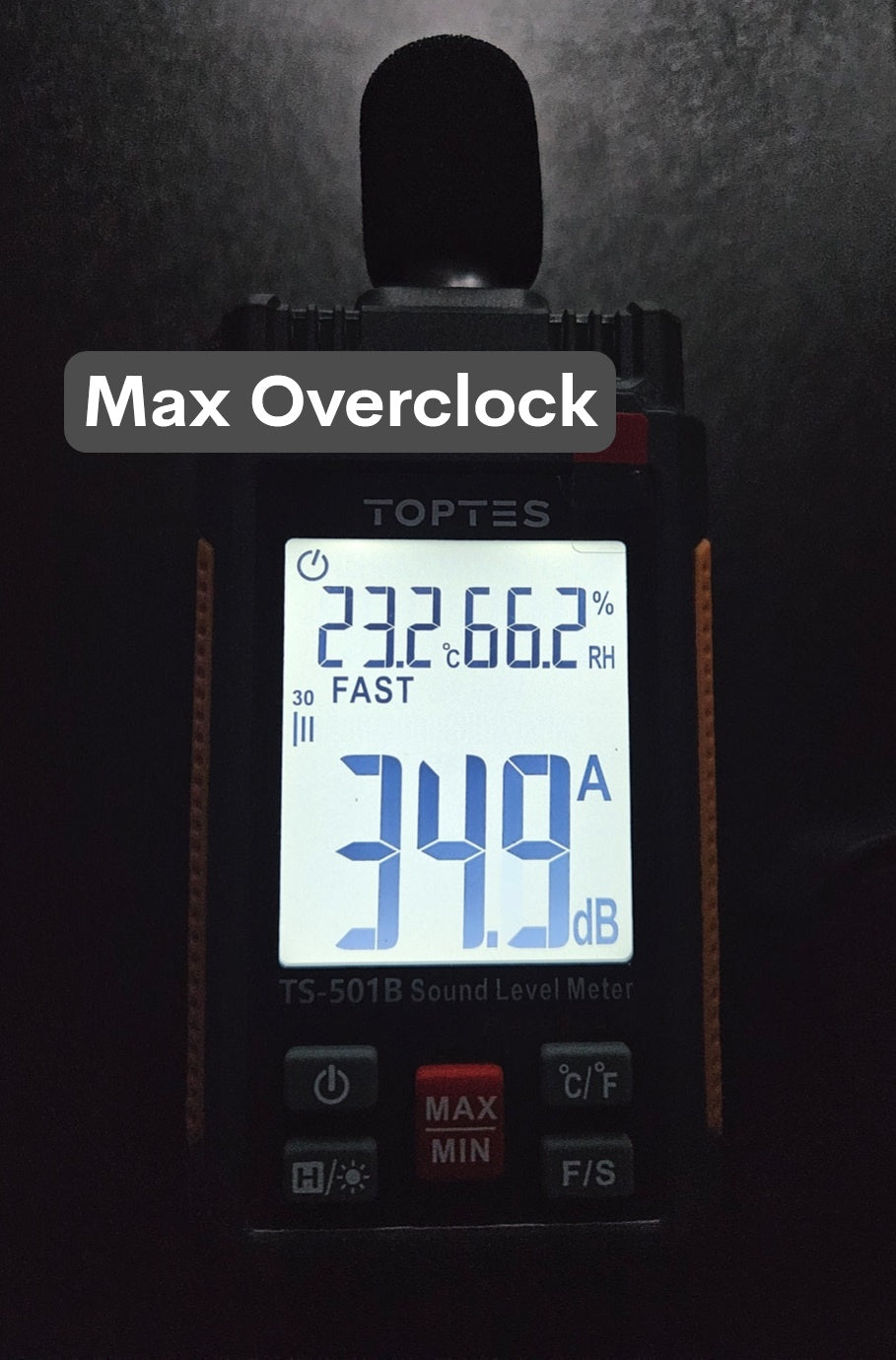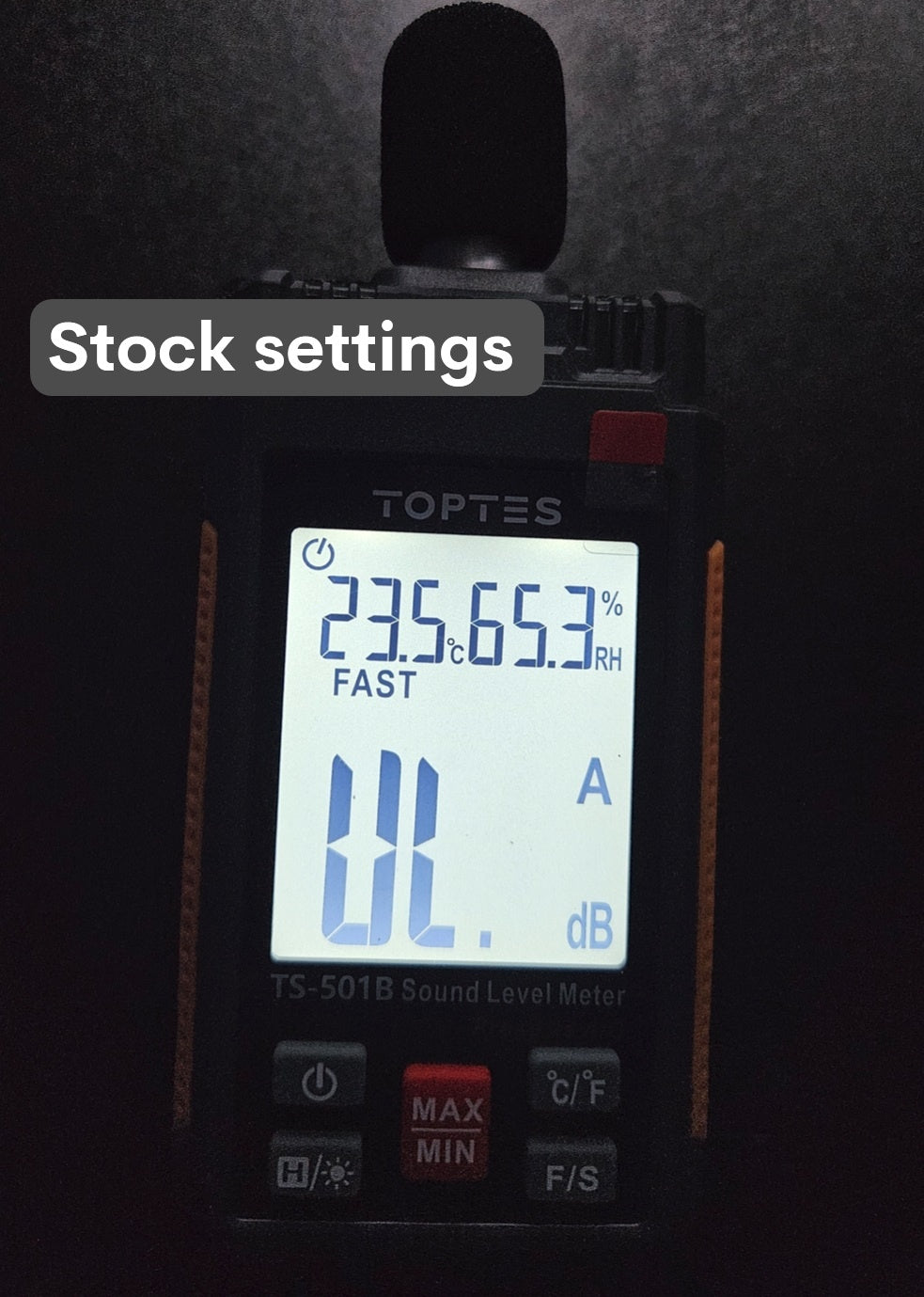 Measured with TopTes TS-501B Decibel Meter